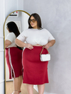 Conjunto Blusinha e Saia Midi em Viscolycra com Detalhe de Listras